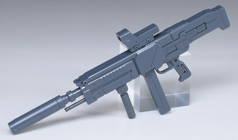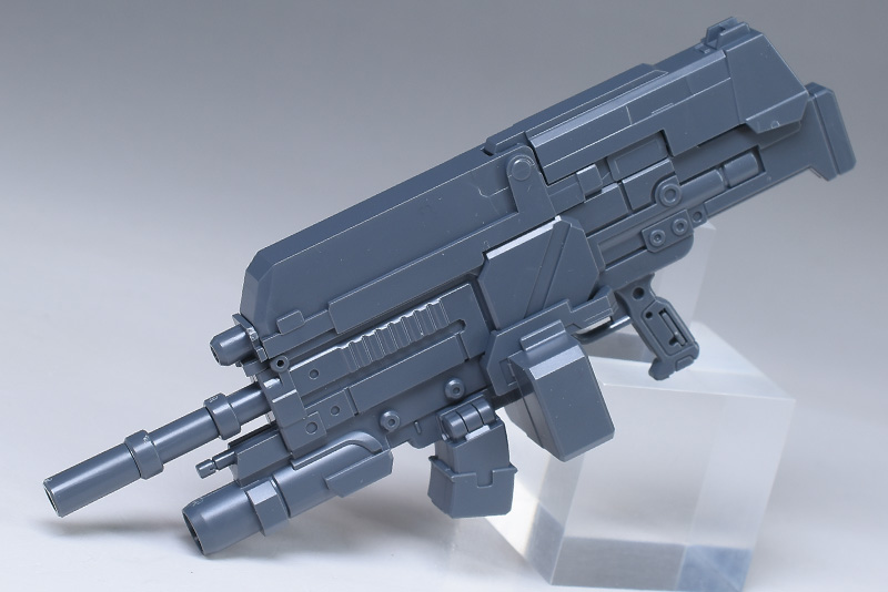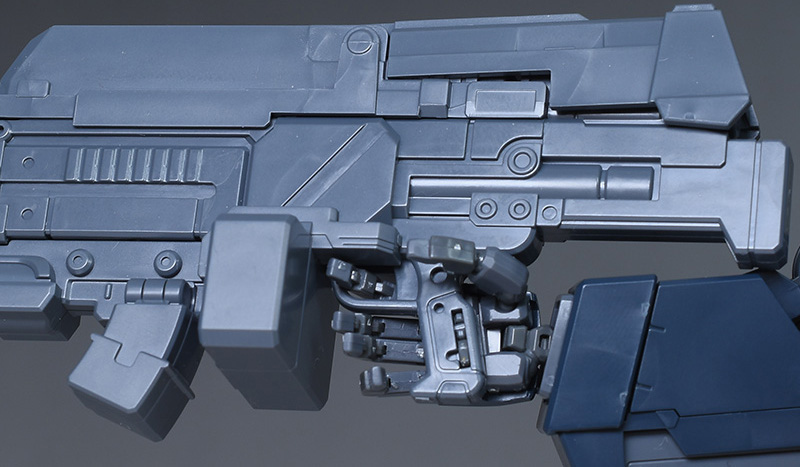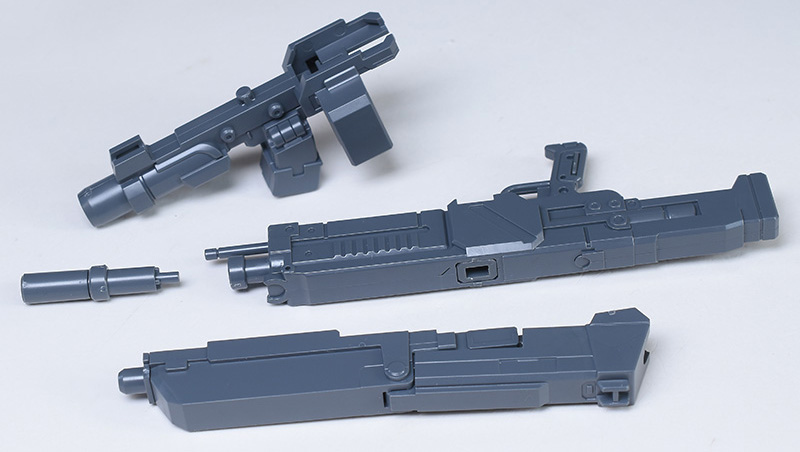 ビーム・ライフル。ジェスタのビーム・ライフルに拡張装備を追加したジェスタ・キャノン専用のビーム・ライフルです。上部にセンサーユニット、下部にグレネード・ランチャーを装備するなど、重厚でボリューム感あるライフルになっています。表面にはメカニカルなモールドが造形。ミリタリー要素を強く感じさせる武装になっています。