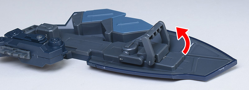 ビーム・キャノンや4連マルチ・ランチャーを前方に展開することで、攻撃的なポーズを演出することができます。エモーションマニピュレーターを平手にして添えることで、砲身を支えるような演出も可能。ポーズにより自然な表情を付けることができます。