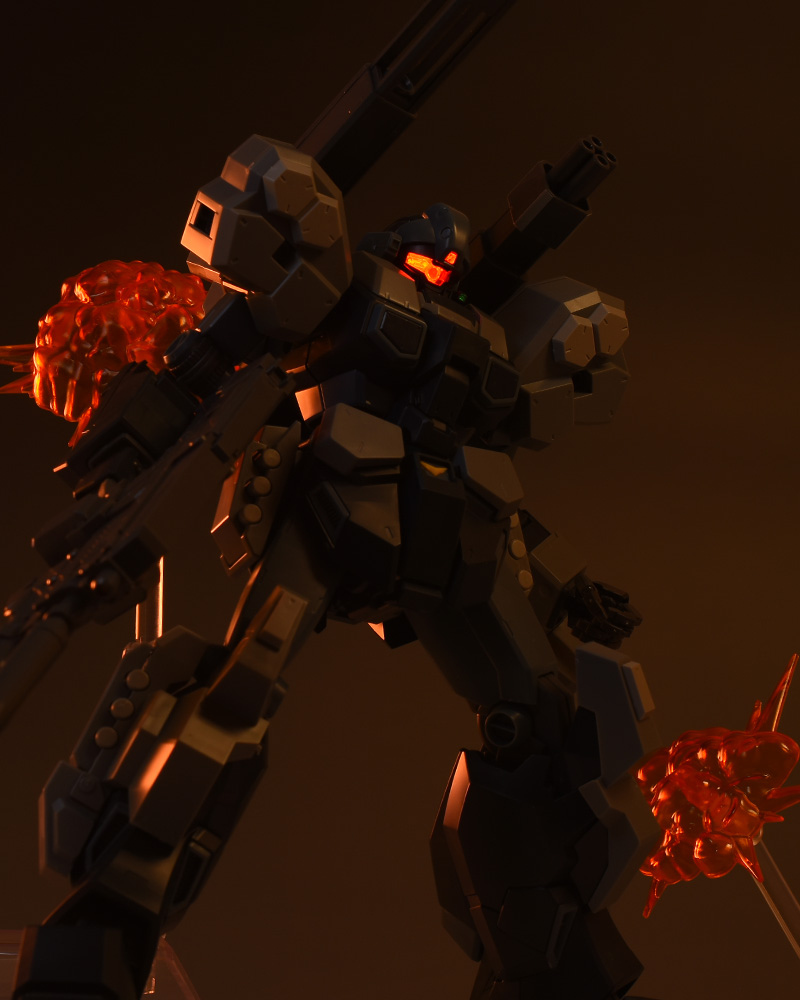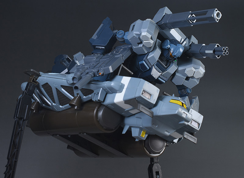 以上です。ベースのジェスタの出来が良いため、このジェスタ・キャノンもMGらしく十分な完成度がありますね。各部増加装甲によって重厚且つ見応えのある容姿になっていますし、マッシブながらも軽快さを感じさせるデザインでジェスタにはない味があります。カスタマイズされたビーム・ライフルも重厚でミリタリー要素が強く、特殊部隊らしさがうまく引き出されていると思います。