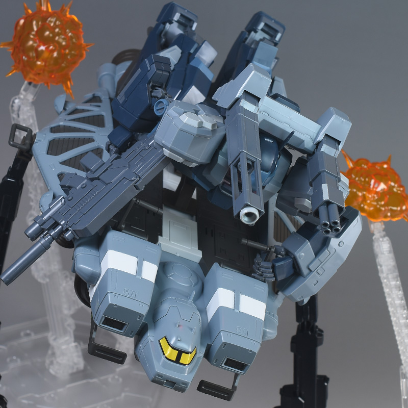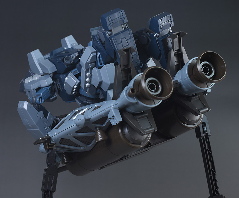 腰と脚部のグレネード・ランチャーを展開してポージング。劇中ではガランシェールの航行停止要求をする際、威嚇として使用していました。(展開するのは手投げ時だけかも;)