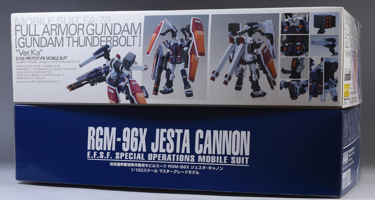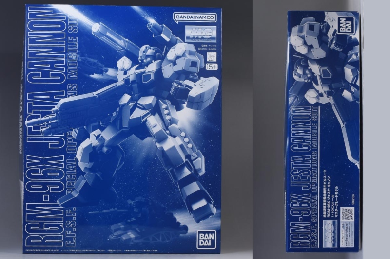 今回は、MG 1/100 ジェスタ・キャノンのパッケージ、ランナーをご紹介します!箱絵や説明書、カラーガイド等も合わせてご紹介していきます。では箱絵からどうぞ。