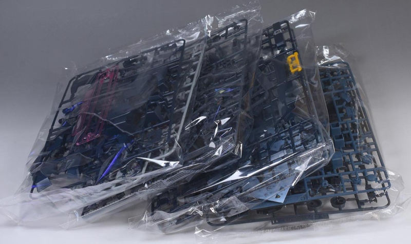 ↑Gランナー。グレーが2枚、ダークブルーが2枚あります。腰部や腕部、脚部外装パーツ。ダークブルーのほうは腰部や肩部、脚部パーツが省かれています。