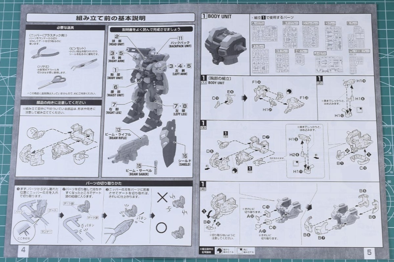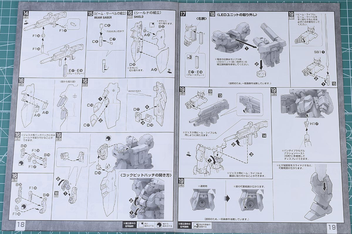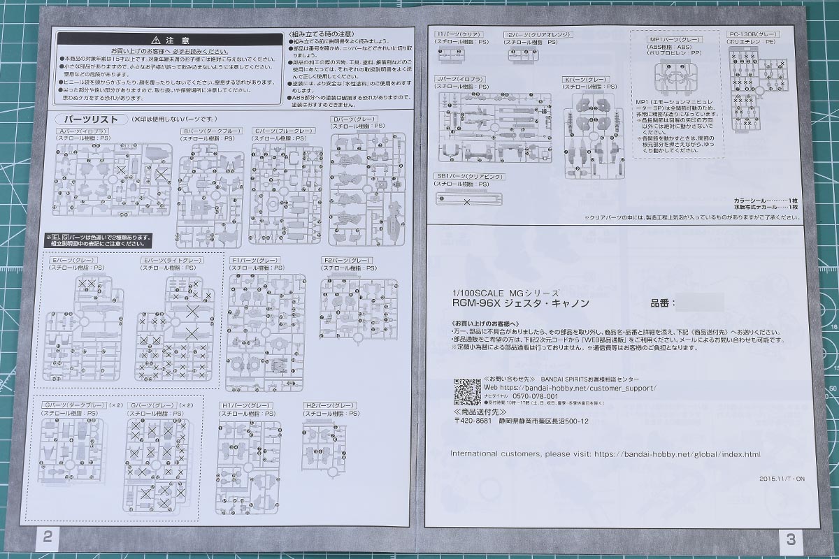 説明書は大判B5サイズ。表紙は近年のMGと同じ黒枠、中央はパッケージイラストのカラー版が描かれたものになります。