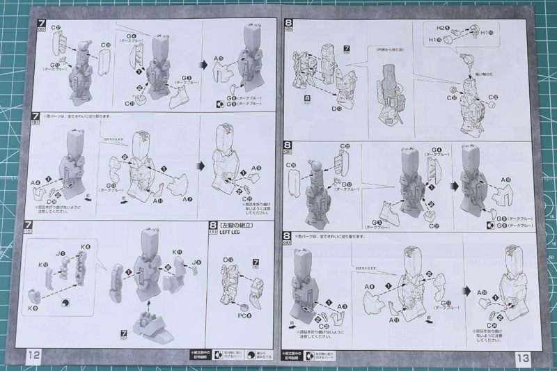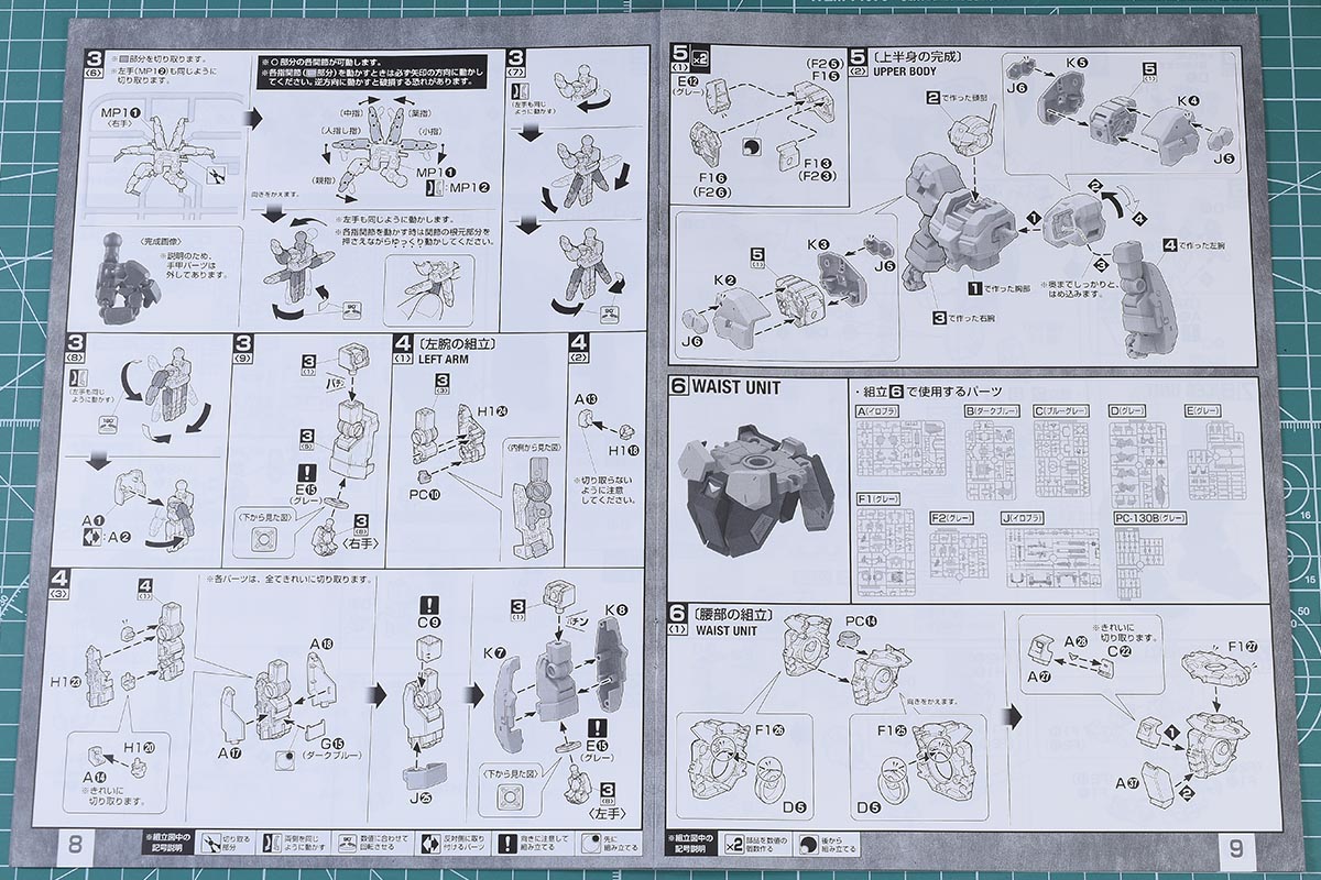 以上、説明書でした。少し前のキットなので、内部フレームのパーツでも複数のランナーに分けて配置されていますし、それに外装や武装などが加わるため、部位や装備ごとにパーツを求めて寄る必要があります。なので組み立てには少し時間がかかります。