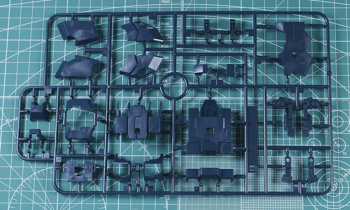 ↑Bランナー。ダークブルー成形色で、胴体外装パーツやバックパック、シールド、シールド用のアームパーツなど。