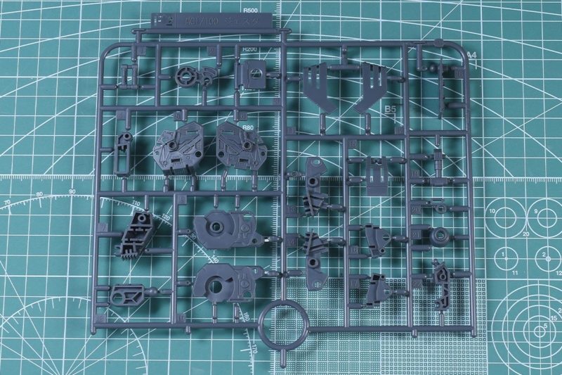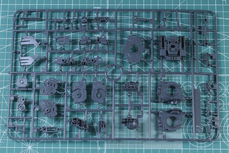 ↑Dランナー。グレー成型色で、頭部や胴体、脚部などの内部パーツ、シールドパーツなど。KPS素材です。