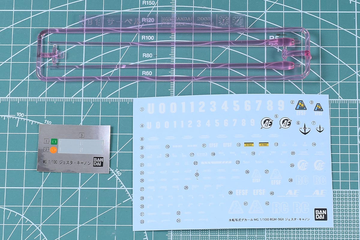 ↑SB1ランナー、ホイルシール、水転写デカールです。SB1はクリアピンクのビーム・サーベル刃。