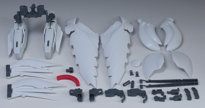 成形色はホワイト2色を基調に、各部にイエローやレッド、ライトグレーを配色。その他、内部や関節がダークグレー、ダークブルー、ダークグレー成形色で細かく分けられています。全体的に清潔感と気品を感じるカラーリングが再現されています。