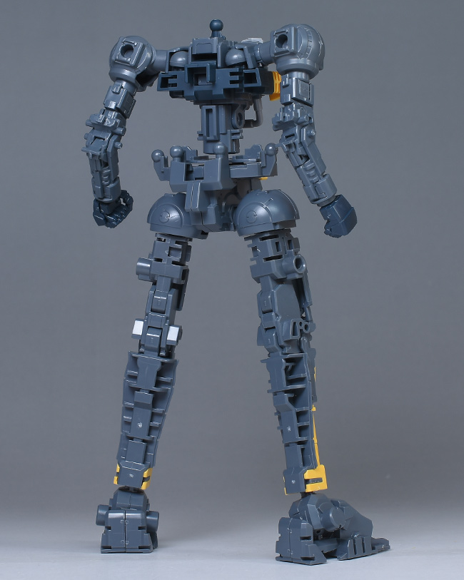 上腕、前腕は筒型パーツの組み合わせで合わせ目はありません。ハンドパーツは親指のみ可動し、残りの4指は組み替え式。