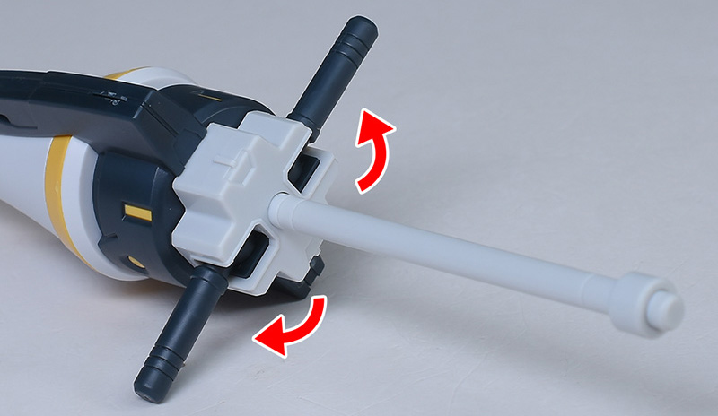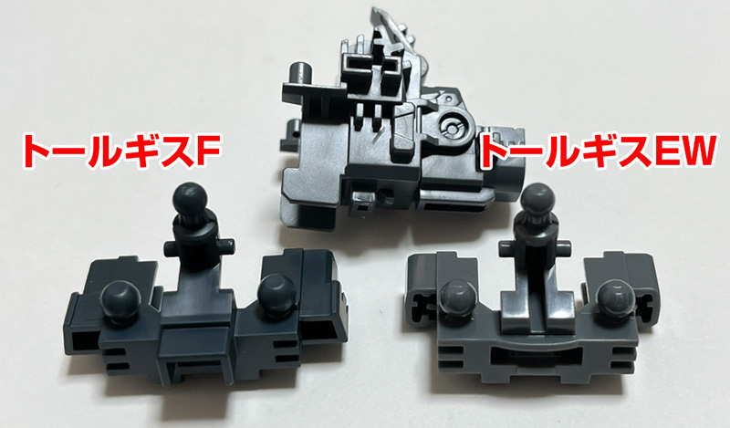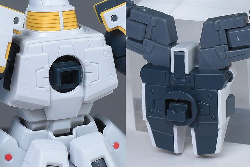 トールギス本体とは角型ダボ接続で固定強度は高め。ウイングゼロとは構造が異なるため、組み替えることはできません。
