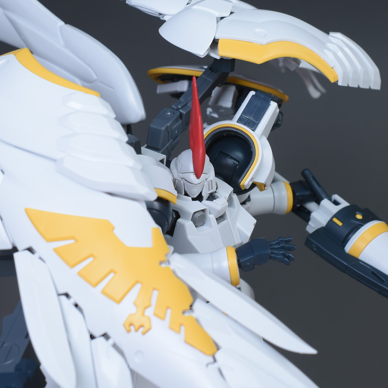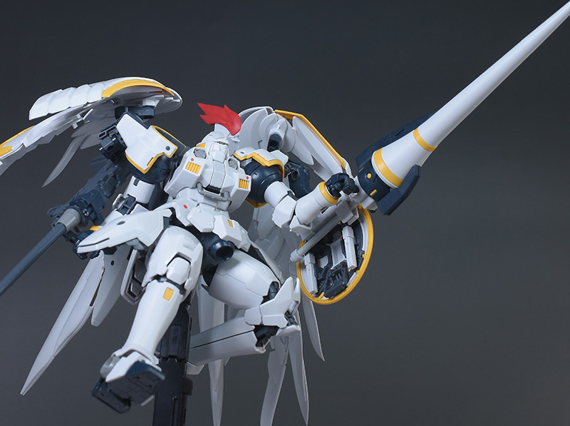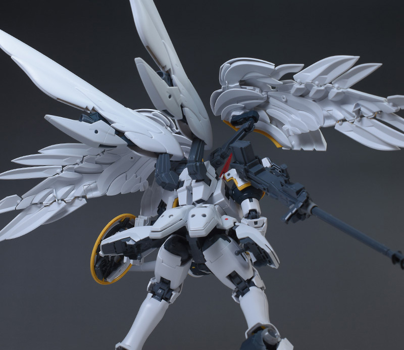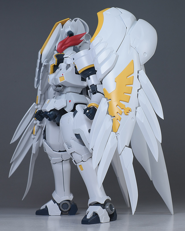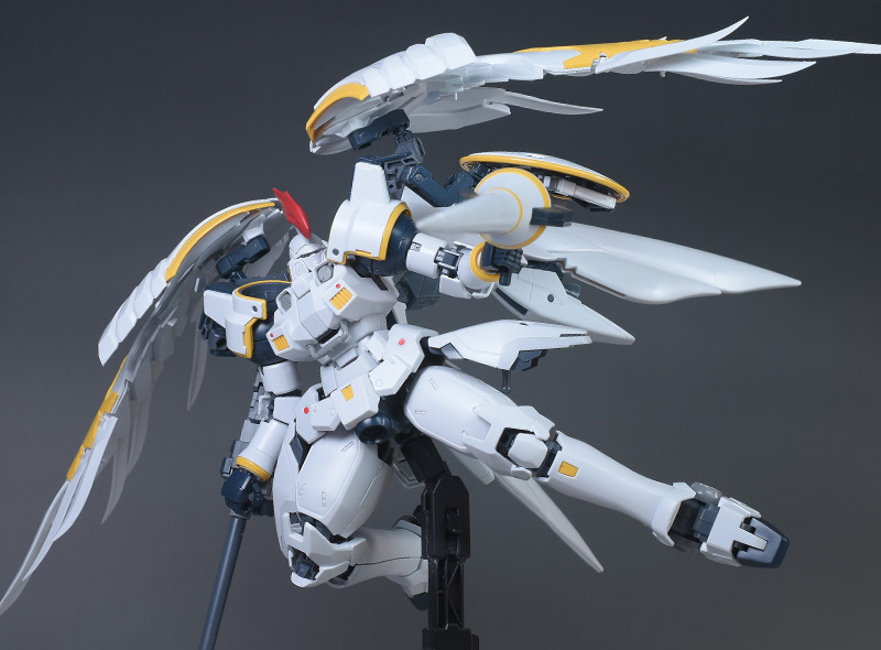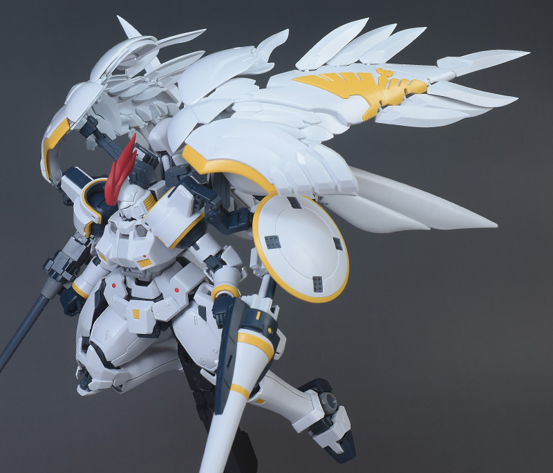 以上です。トールギス本体だけでも十分に気品のある質の高いキットですが、それに天使のウイングバインダーが加わることで、圧倒的な品格、清潔さ、気高さなどを感じさせるキットに進化。設定では(ウイングバインダーが)プロトタイプながらも、それを感じさせないくらいに完成された感の強いキットに仕上がっていますね。ウイングバインダーの造形が良いのでとにかくポーズが決まりやすいですし、トールギスの機体形状とも相性がバッチリです。