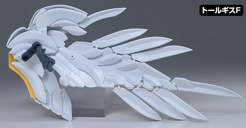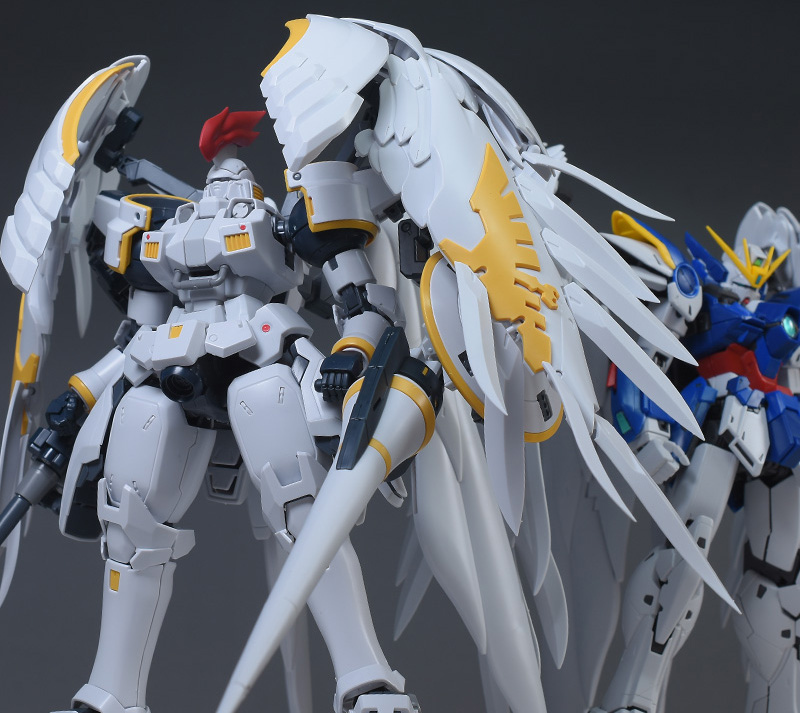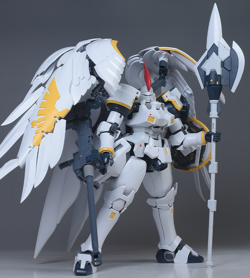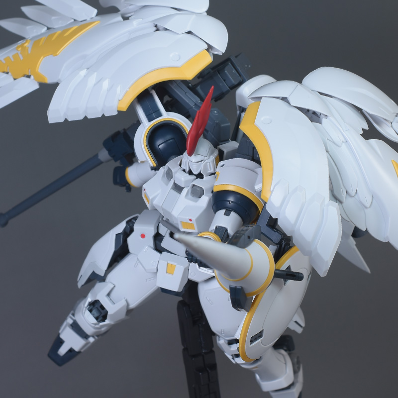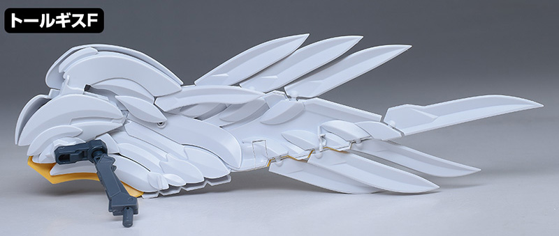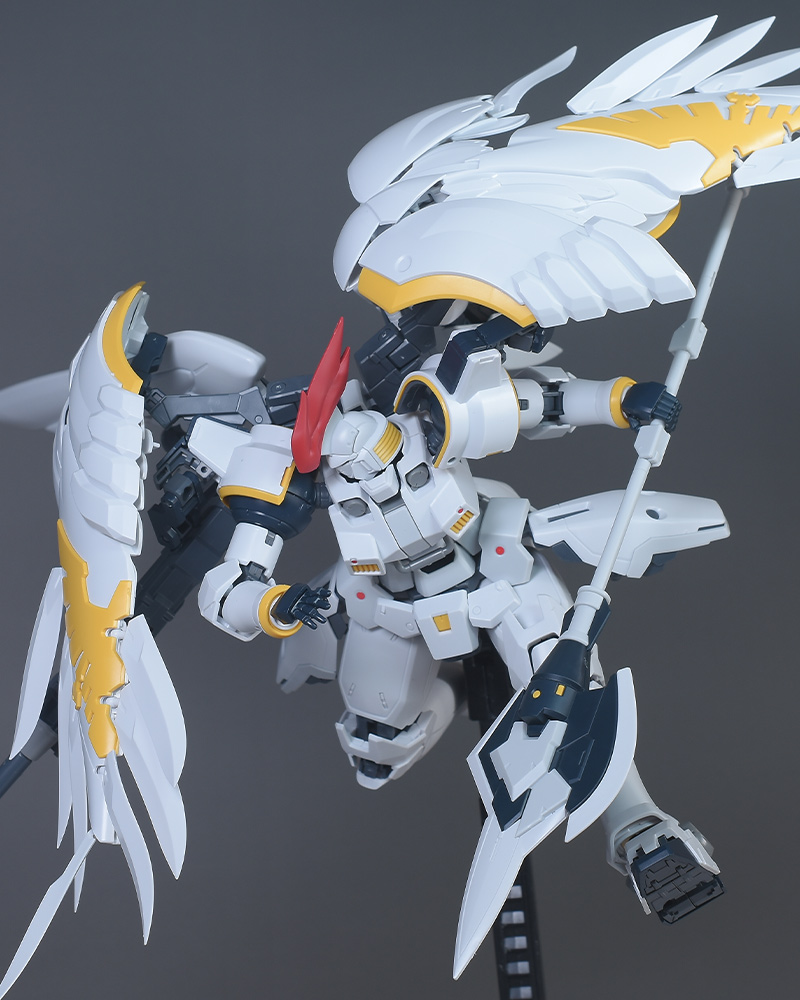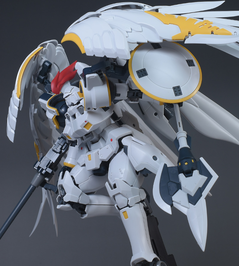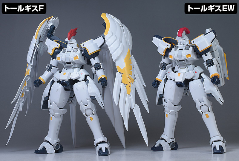 MGトールギスEW(2013年1月発売)の本体部とMGウイングガンダムゼロEW Ver.Ka(2020年11月発売)のウイングバインダーパーツを流用しつつ、トールギスF用のウイングバインダー、ヒートランス(テンペスト装備)、ヒートハルバードといった武装が新規造形で再現されています。