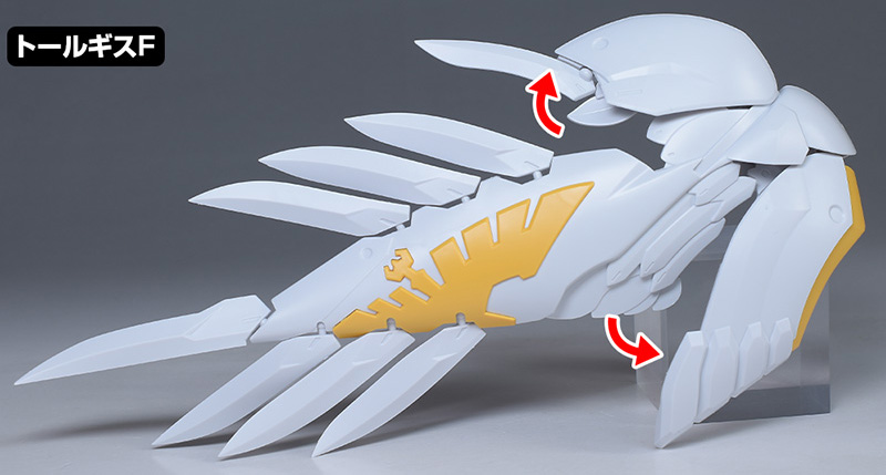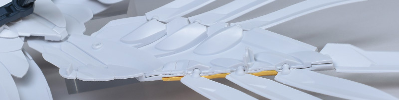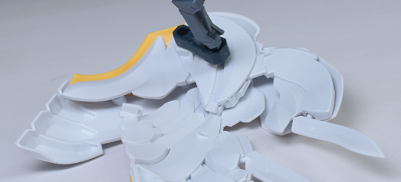 小羽はボールジョイント接続で柔軟に可動。小羽はパーツで挟み込む仕様で側面に合わせ目ができますが、構造上さほど目立ちません。