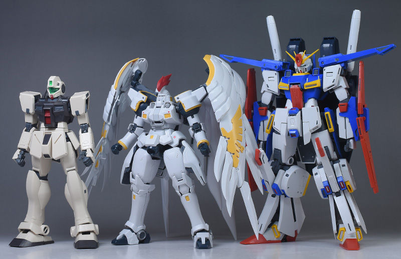 MGジム・コマンド(コロニー戦仕様)、MG強化型ダブルゼータガンダムVer.Kaと並べて大きさを確認。トールギス本体はさほど大きくはないですが、背部ウイングバインダーによって全高、幅共にボリュームが増しています。