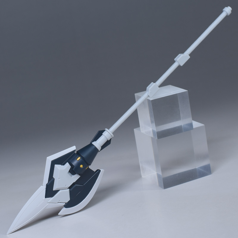 ヒートハルバードを装備して。こちらも指パーツを柄にダボ固定でき、ある程度しっかりとした保持が可能。軽量武装なので肩が重さに負けることもないようでした。肩がポリキャップ仕様なので経年によるヘタれはありうるかも。