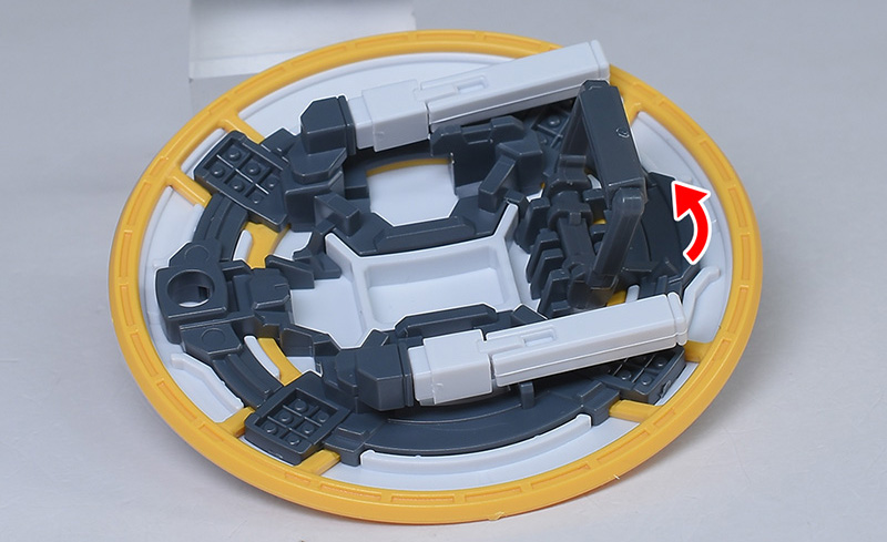 シールド。円盤状の盾です。ふちのイエローラインや表面のグレーモールドがパーツで細かく色分けされています。こちらもMGトールギスEWに付属しているものと同じです。