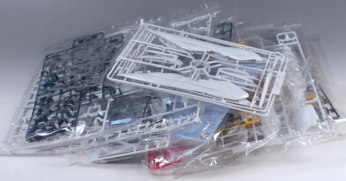 ↑ランナーを全部積むとこれくらい。まぁそこまでのボリューム感はないですね。MG Ex-Sガンダムなどのほうがもっとエグいと思います;