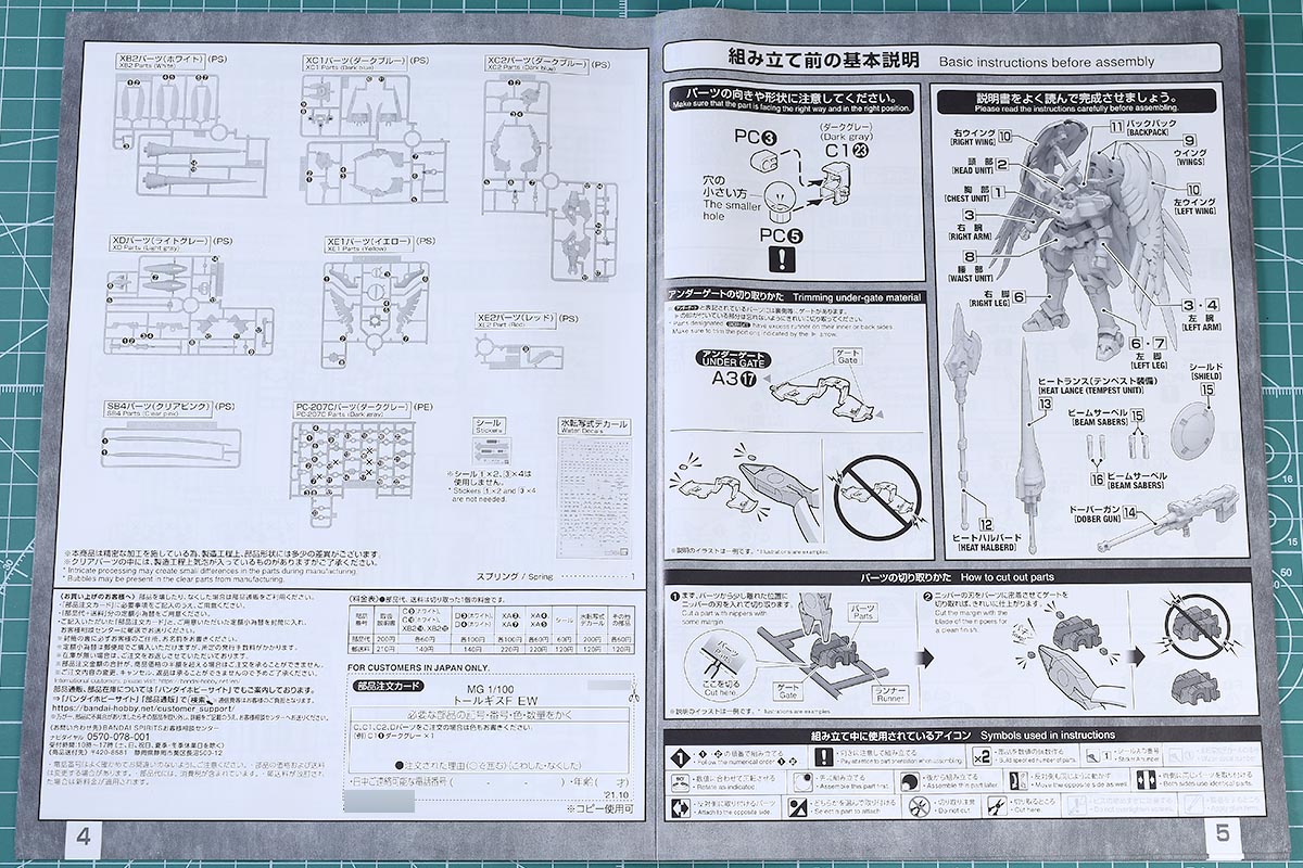 説明書はMG定番の大判B5サイズ。MGの新機動戦記ガンダムWシリーズなので、表紙はパッケージと同じイラスト、同じポージングでの掲載となっています。