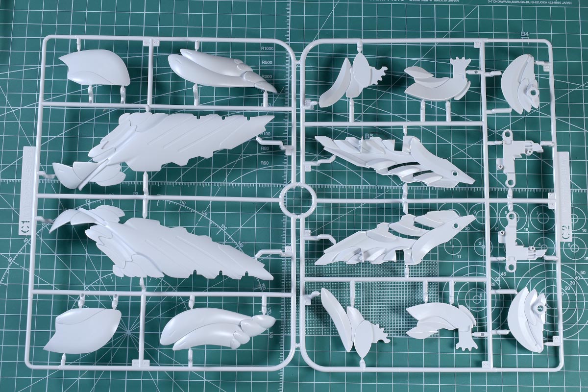 ↑C1、C2ランナー。ホワイト成型色で、背部ウイングバインダーパーツ。MGウイングガンダムゼロVer.Kaからの流用ランナーです。