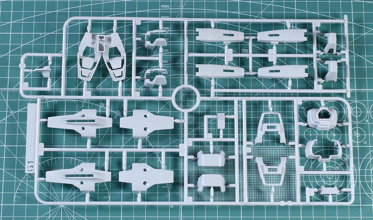 ↑G1ランナー。くすみのあるホワイト成型色で、頭部や胴体外装パーツ。MGトールギスEWからの流用ランナーです。