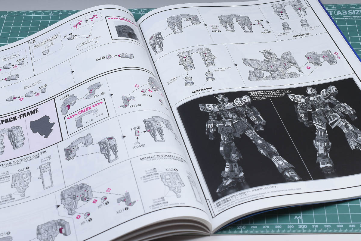 後面にはこのPG UNLEASHED νガンダムのギミックやディスプレイ画像、各部ディテールなどの詳細がパッケージエリア全体を使って掲載されています。