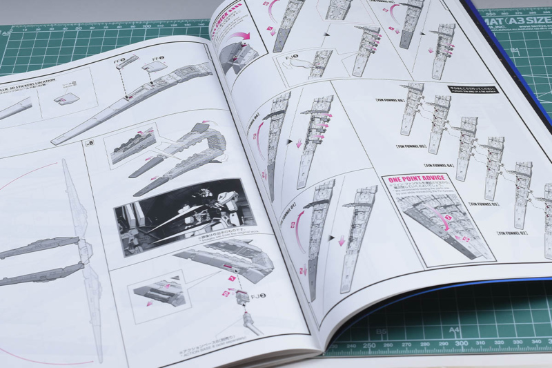 以上です。数えてみるとランナーだけでも70枚以上に及ぶというとてつもないキットです。ですが説明書を見る限り、そこまで複雑ではないように見えますし、ただ組み立てるだけでなく金属パーツやメタリック3Dシール、リード線(ワイヤーパーツ)、エッチングシールなどで色々と組み立てる楽しさが追求されているのが良いですね。