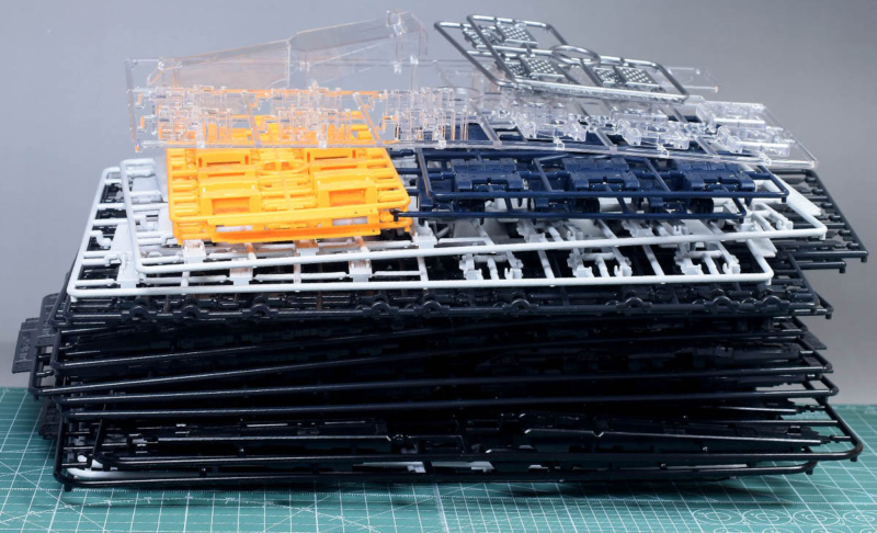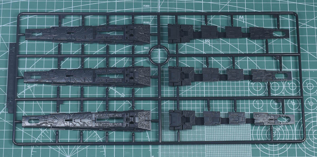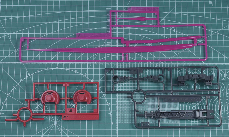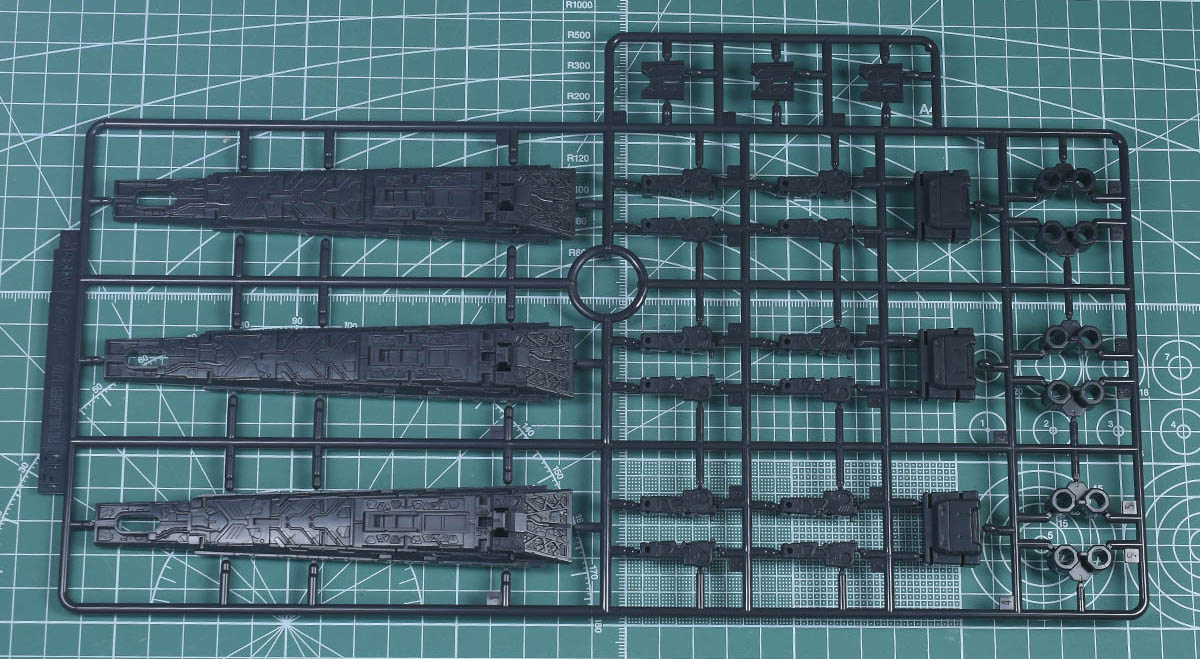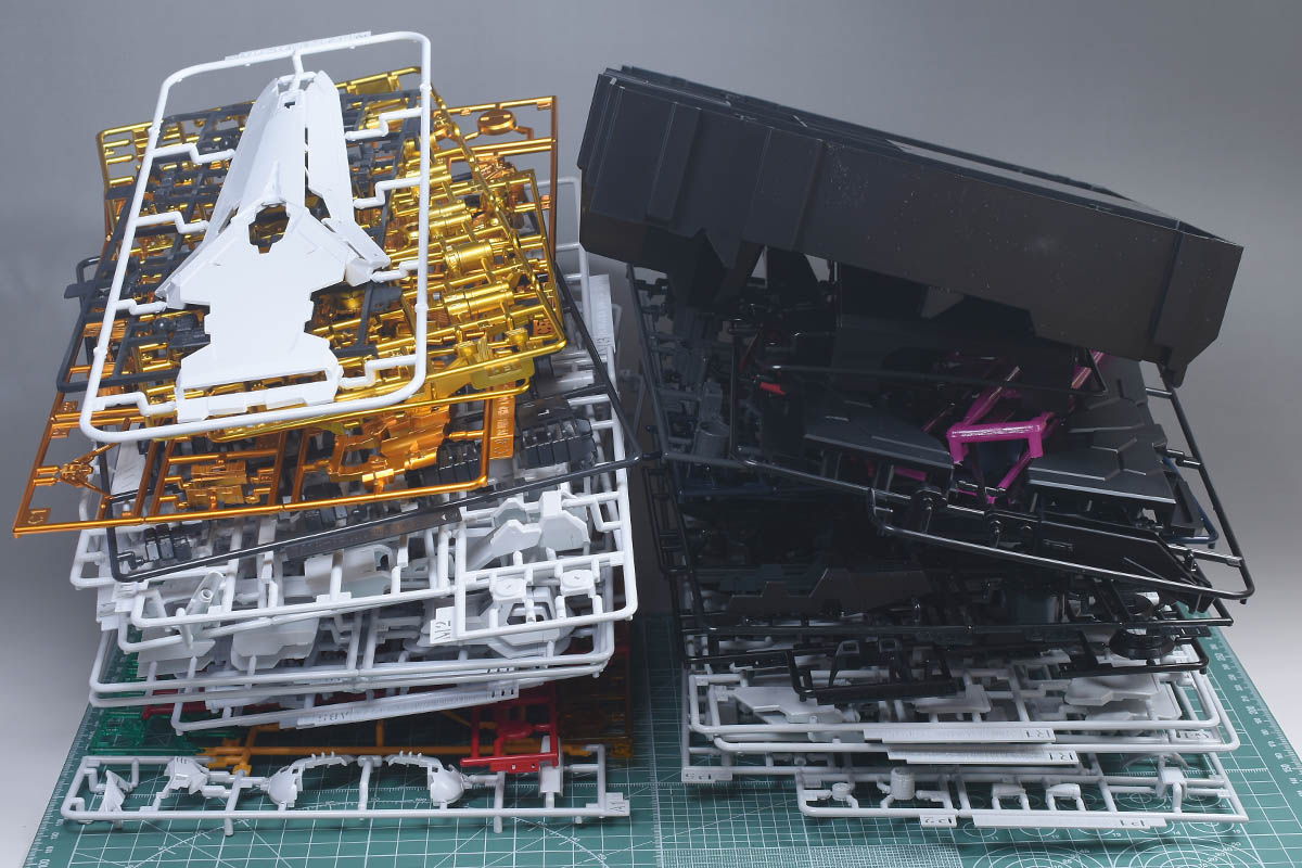 以上、外装や武装類、台座などのランナーでした。大型キットで強度が必要だからか、はたまた別の要因かで、いくつかのランナーにはABSが使用されています。内部フレームの多くもABSですし、あまり塗装を前提としていないのかもですね。