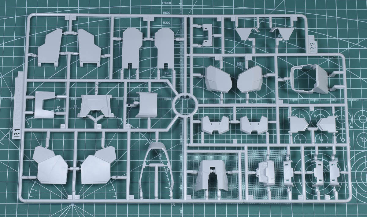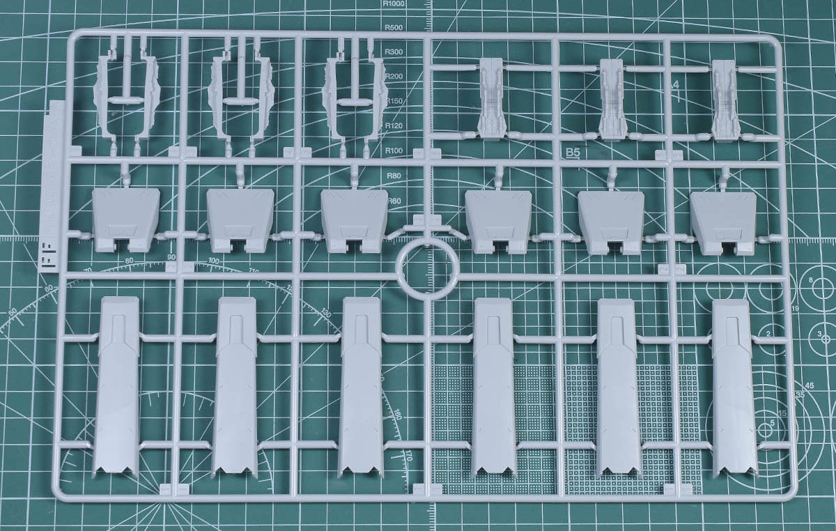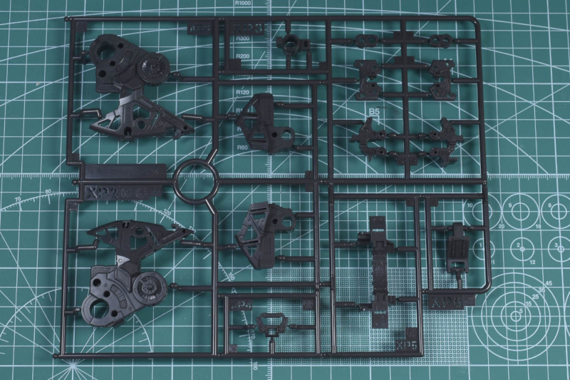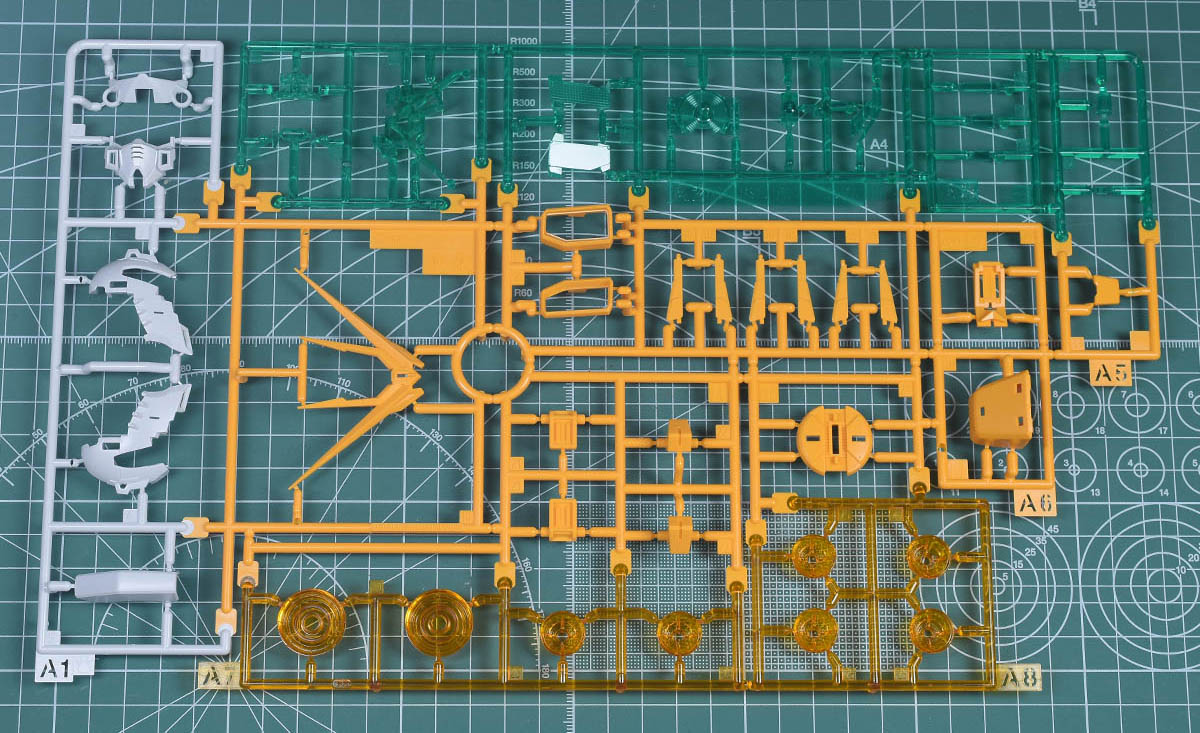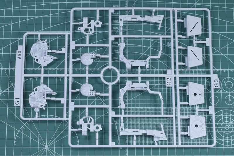 以上、外装や武装類、台座などのランナーでした。大型キットで強度が必要だからか、はたまた別の要因かで、いくつかのランナーにはABSが使用されています。内部フレームの多くもABSですし、あまり塗装を前提としていないのかもですね。