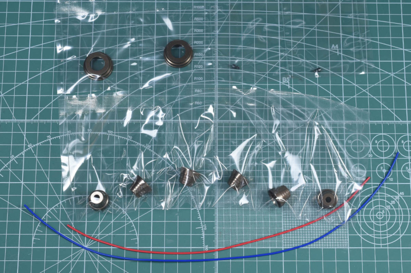 金属パーツ、リード線です。金属パーツは個別に袋に入っています。
