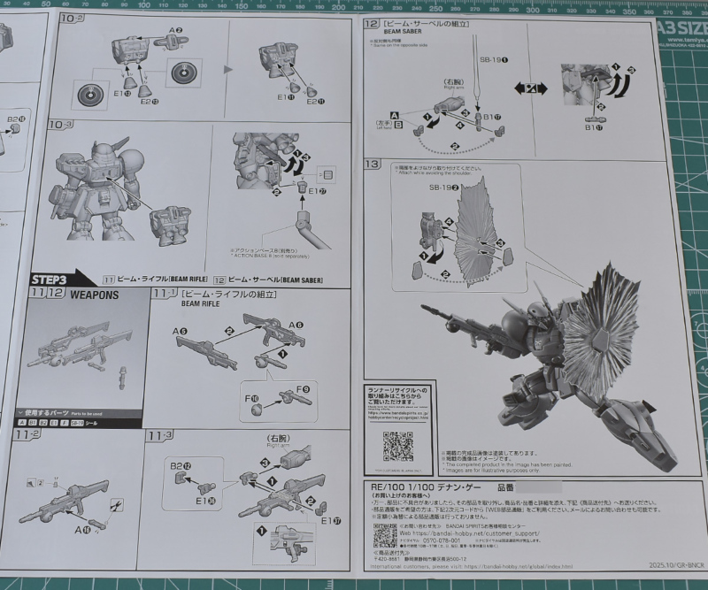 以上、説明書でした。簡単組立をコンセプトとしているRE/100ですが、このデナン・ゲーは割と構造が細かく緻密です。関節も鍵型ダボ接続で抜けない仕様にするなど、各部に配慮がしてあって良いですね。