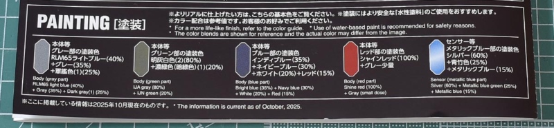カラーガイド。調色は割と細かいですが、色種自体は少なめ。