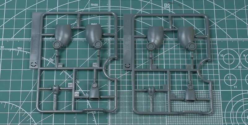 ↑C1、C2ランナー。ダークグリーン成形色で、頭部や胴体部、肩部、足甲パーツなど。