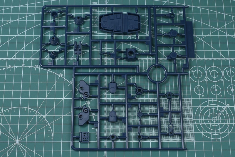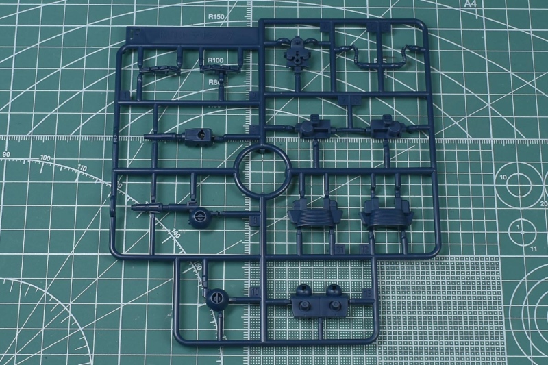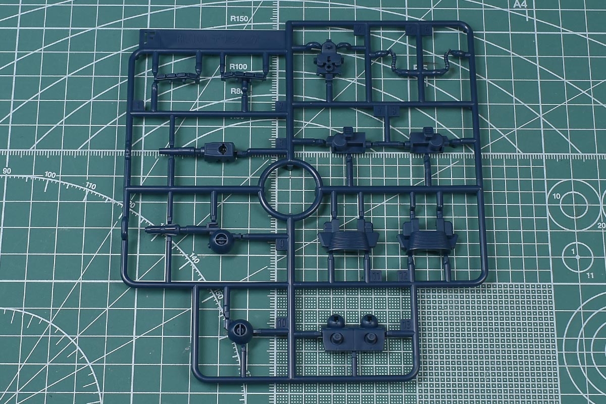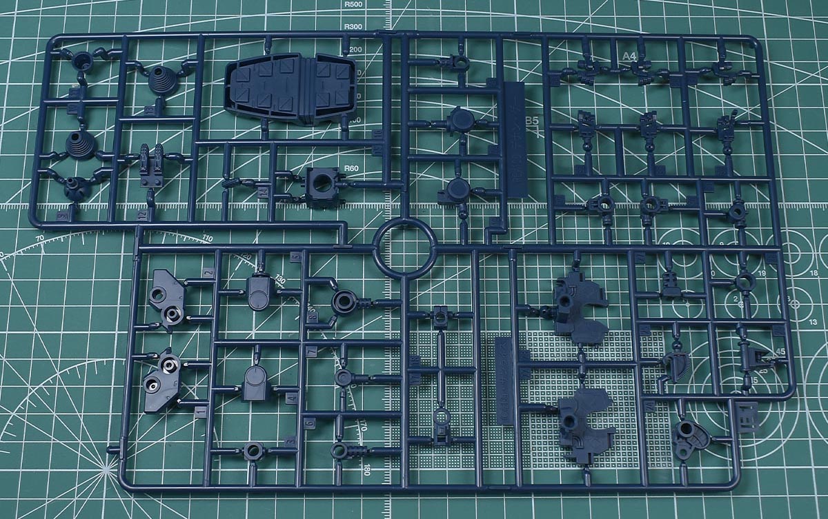 ↑Fランナー。ダークブルー成形色で、頭部や胴体部、バックパック、ビームガンやビームライフルパーツなど。KPS素材です。