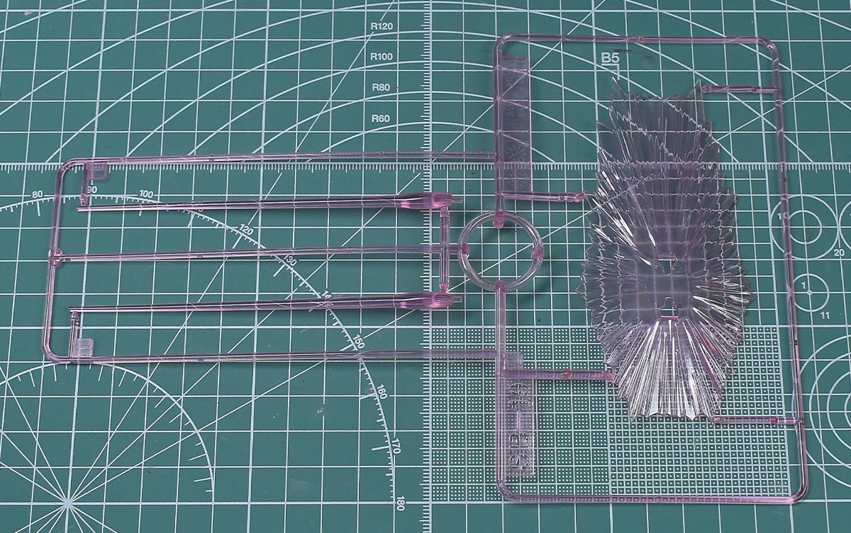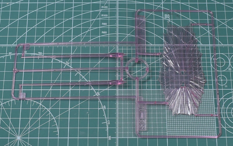 ↑SB-19ランナー。クリアピンク成形色で、ビームサーベル刃とビームシールドパーツ。