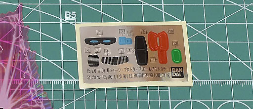 ホイルシールが付属し、頭部ダクトやセンサー、ツインアイ、エアインテーク内部などを補いますが少なめ。その他の各部ダクトはパーツで色分けされているため、素組みでも十分な仕上がりになります。