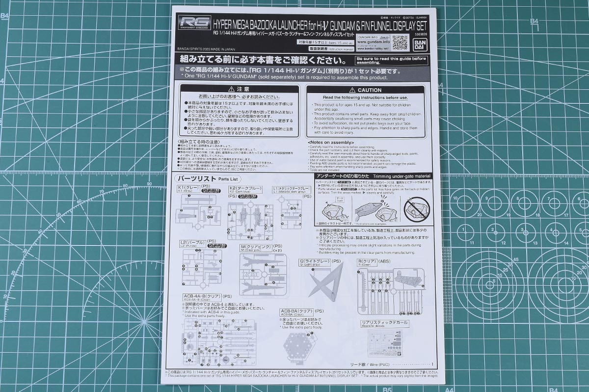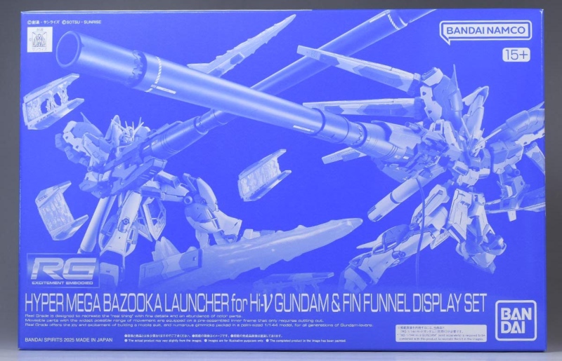 今回は、RG 1/144 Hi-νガンダム専用ハイパー・メガ・バズーカ・ランチャー&フィン・ファンネルディスプレイセットのパッケージ、ランナーをご紹介します!箱絵や説明書、カラーガイド等も合わせてご紹介していきます。では箱絵からどうぞ。