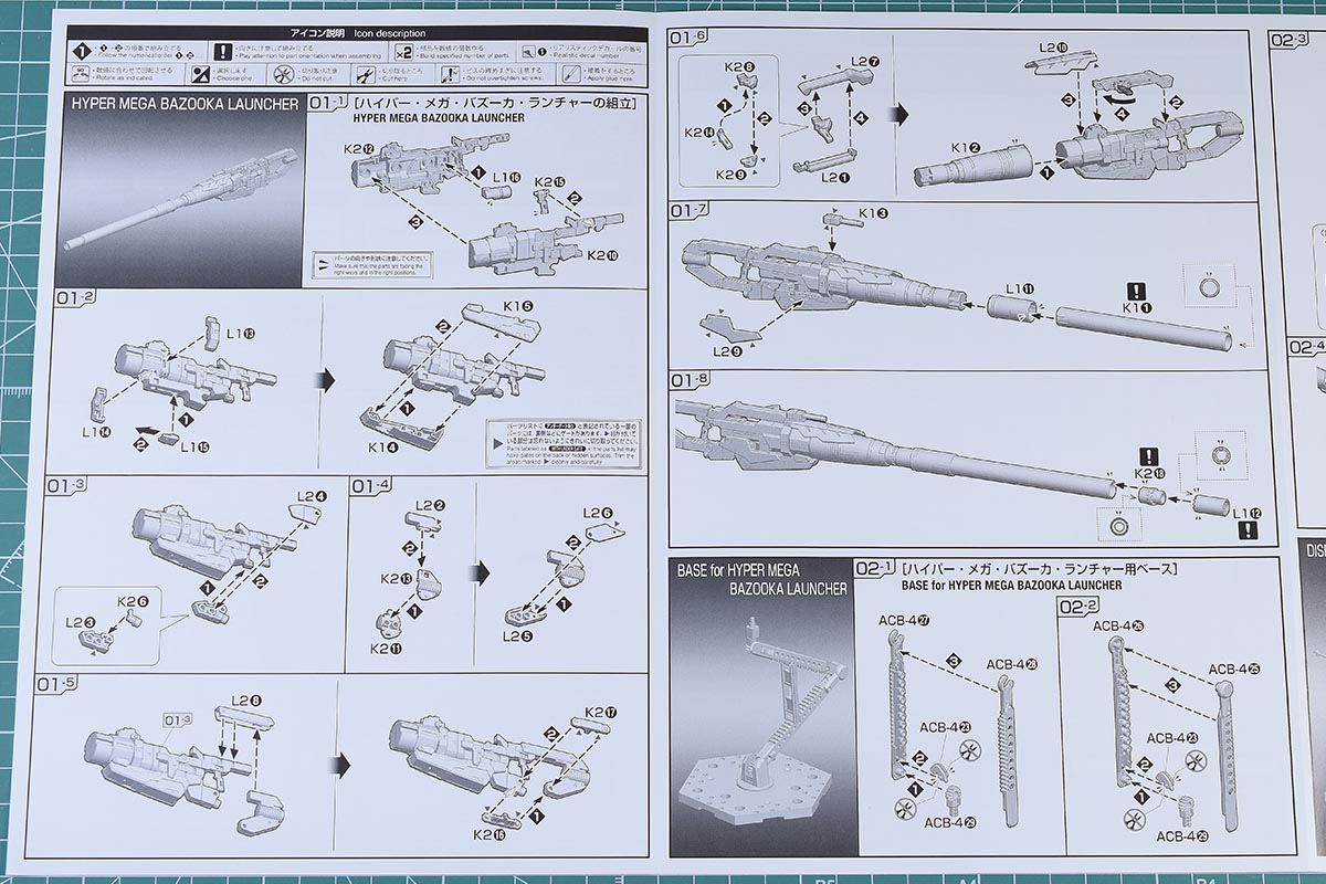 以上、説明書でした。ハイパー・メガ・バズーカ・ランチャーは細身ですが、METAL ROBOT魂に匹敵するくらい造りがしっかりとしていて完成度が高いです。パーツ構成もしっかりとしていますし合わせ目もできません。ただ、自分はグリップの向きを間違えて組んでしまい、グリップの組み込みが最初の組立工程だったので全てバラしました_| ̄|◯