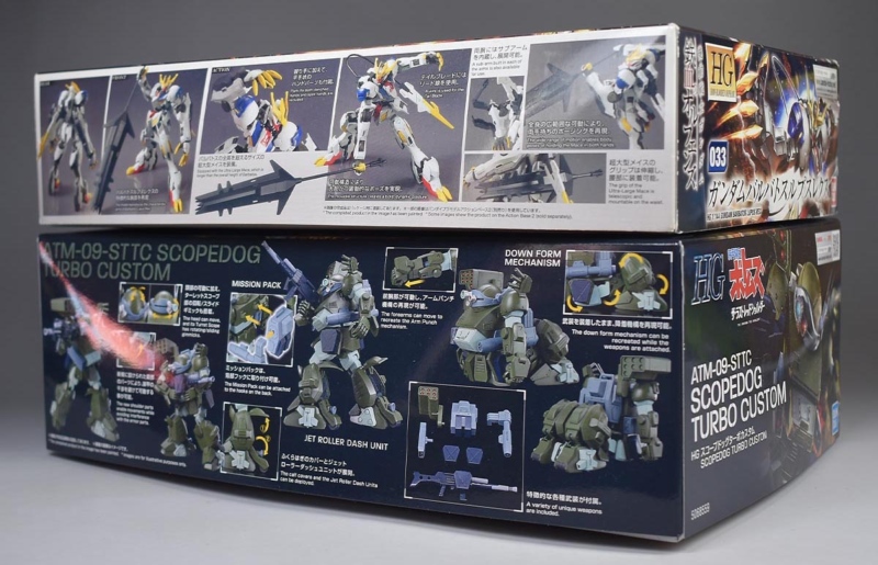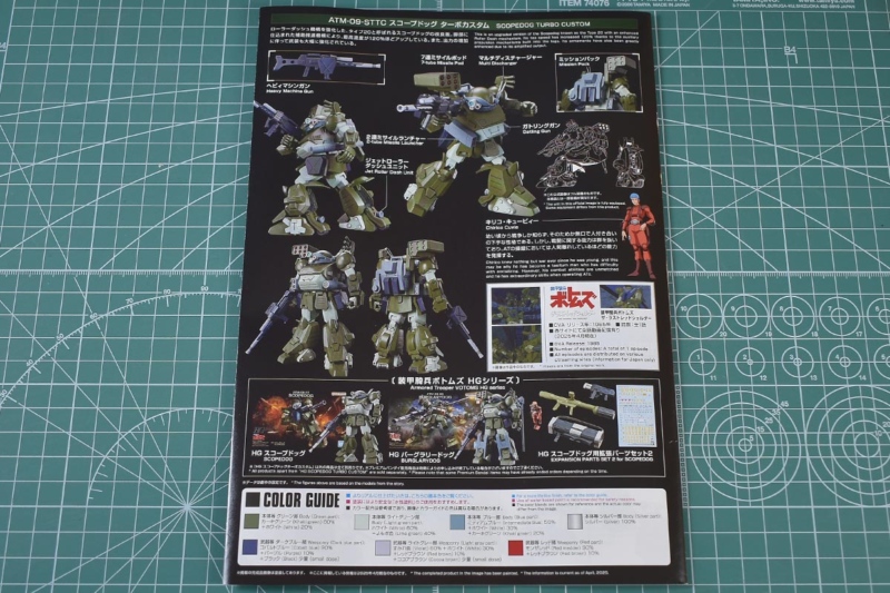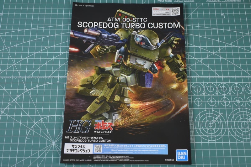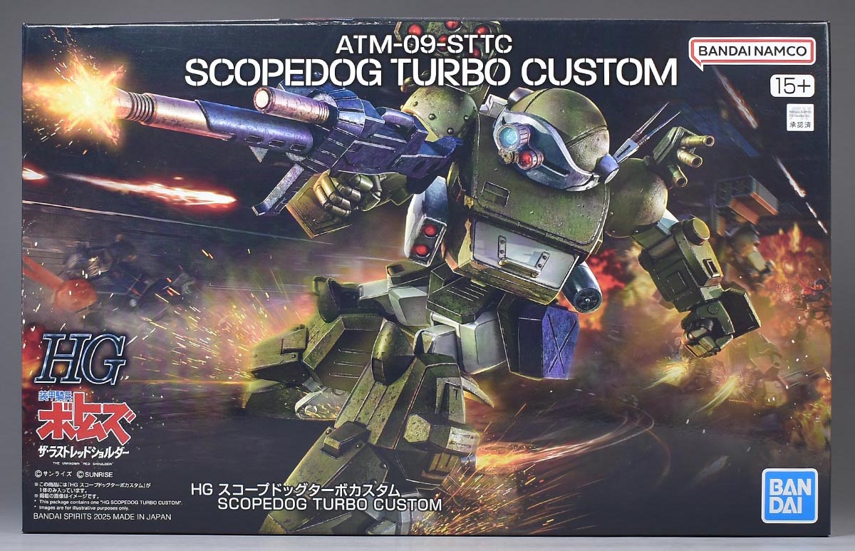 今回は、HG ATM-09-STTC スコープドッグターボカスタムのパッケージ、ランナーのレビューをご紹介します!箱絵とランナー各種、説明書、カラーガイド等のレビューも合わせてご紹介していきます。では箱絵からどうぞ。