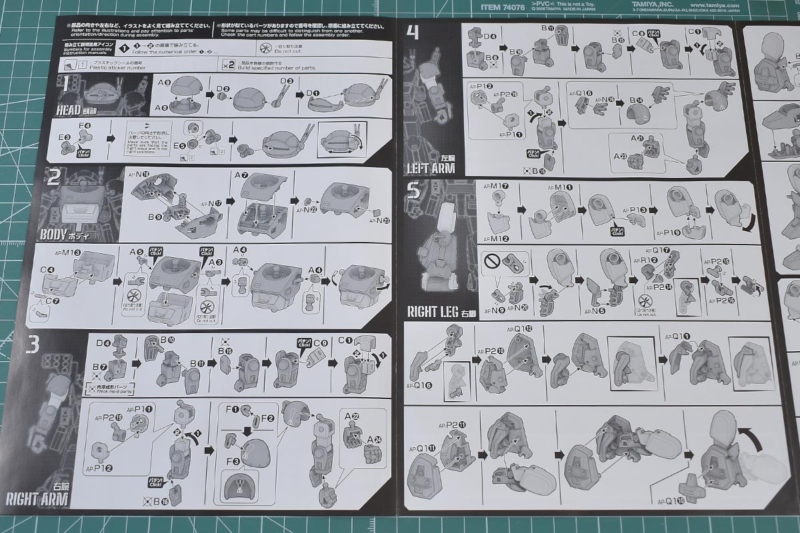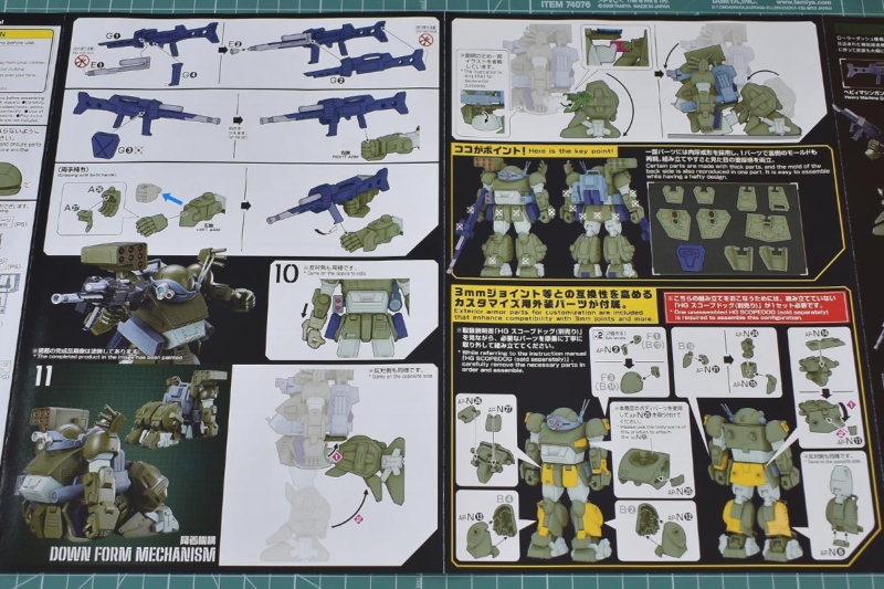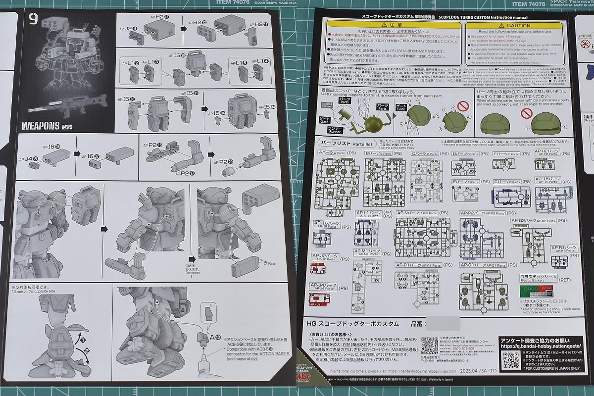 以上、説明書でした。基本的には他のHG装甲騎兵ボトムズシリーズと構造は同じ。武装類も拡張パーツセットに付属しているものとほぼ同じですが、肩部がこのキットで新規フォーマットに変更され、より造りの良いものに進化しています。脚部ターボユニットは構造や展開ギミックは良いですが、合わせ目ができるのがちょっと残念。。