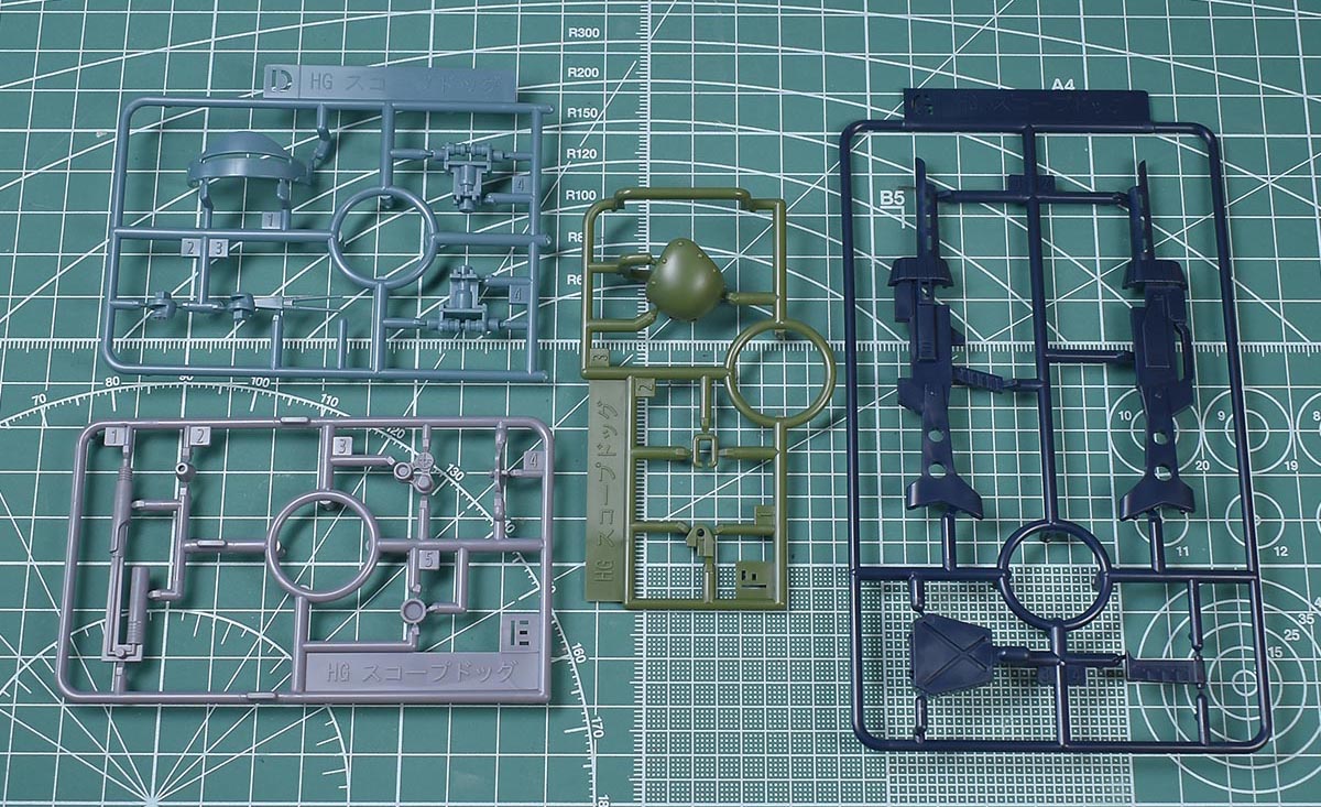 ↑AP-M2ランナー。ライトグリーン成形色で、腹部や脚部パーツ。HGバーグラリードッグからの流用ランナーです。KPS素材。