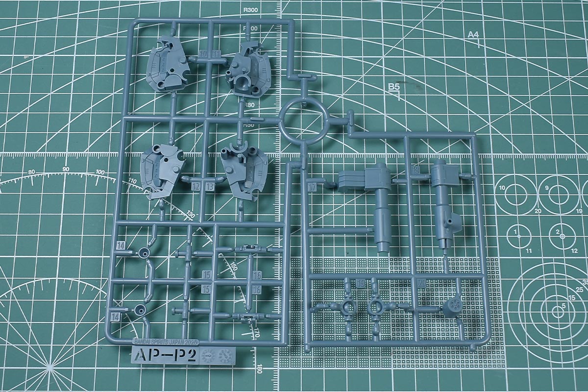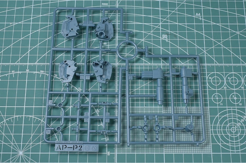 ↑AP-P2ランナー。ブルーグレー成形色で、肩部や脚部パーツ、左脇のガトリングガンパーツ。KPS素材で、このターボカスタム用の新規ランナーです。