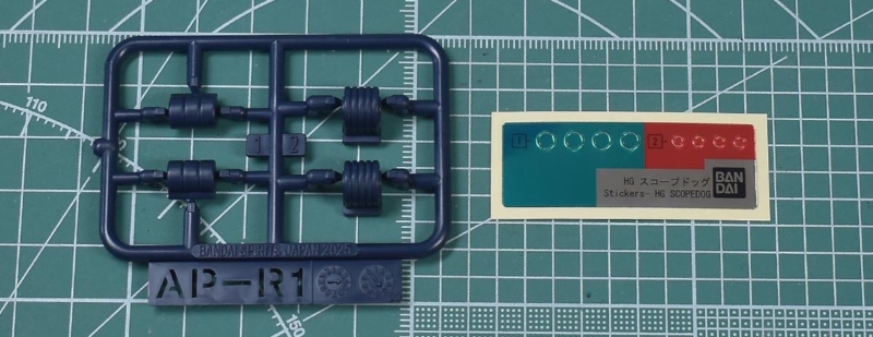 ↑AP-R1ランナー、プラスチックシール。AP-R1はダークブルー成形色で、ローラーダッシュユニットのローラーパーツ。