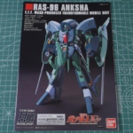 今回は、HG 1/144 RAS-96 アンクシャのパッケージ、説明書、ランナーのレビューをご紹介します!箱絵やカラーガイド等のレビューも合わせてご紹介していきます。では箱絵からどうぞ。 パケ絵はビーム・サーベルを右手に向かい来るアンクシャのイラストが大きく掲載。背景は雲が浮かぶ大気圏内で、バイザーを光らせるユニコーン…