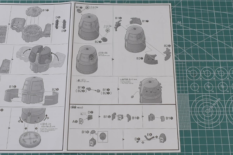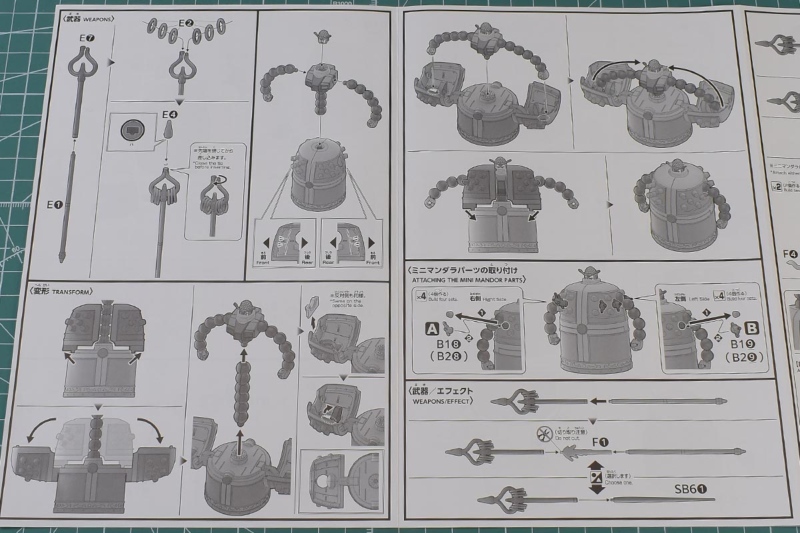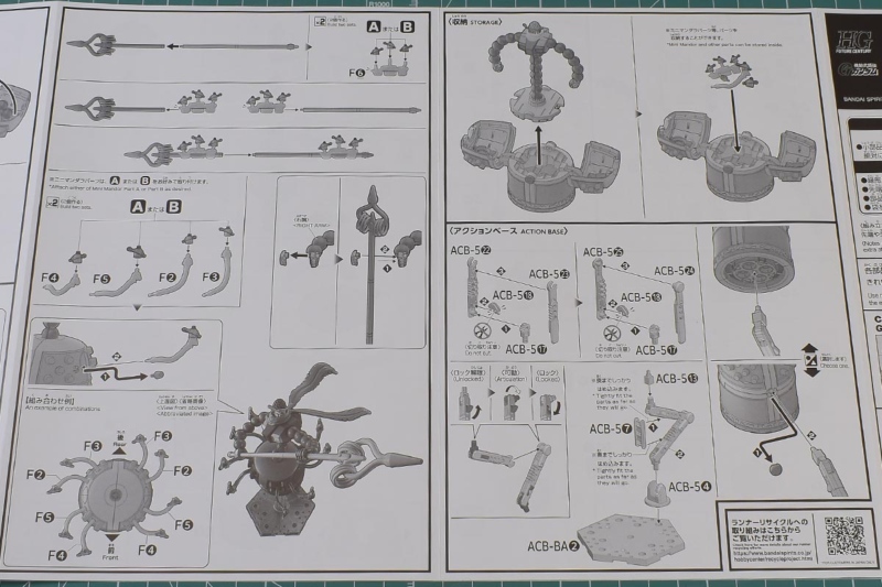 説明書は小判A5サイズ。プレバン商品定番の白黒説明書になります。説明書とは関係ないですけど、何気に劇中の曼陀羅円陣・極楽往生、飛び出したMSの中にはGP01やGP02もいたりします。