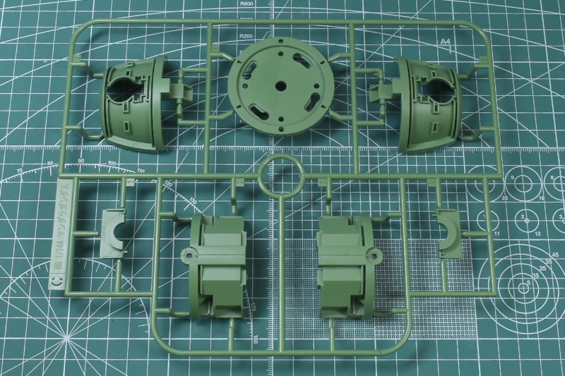 ↑B1、B2ランナー。ダークグリーン成形色で、頭部や胴体部、釣り鐘パーツ、ミニマンダラガンダムパーツなど。KPS素材です。