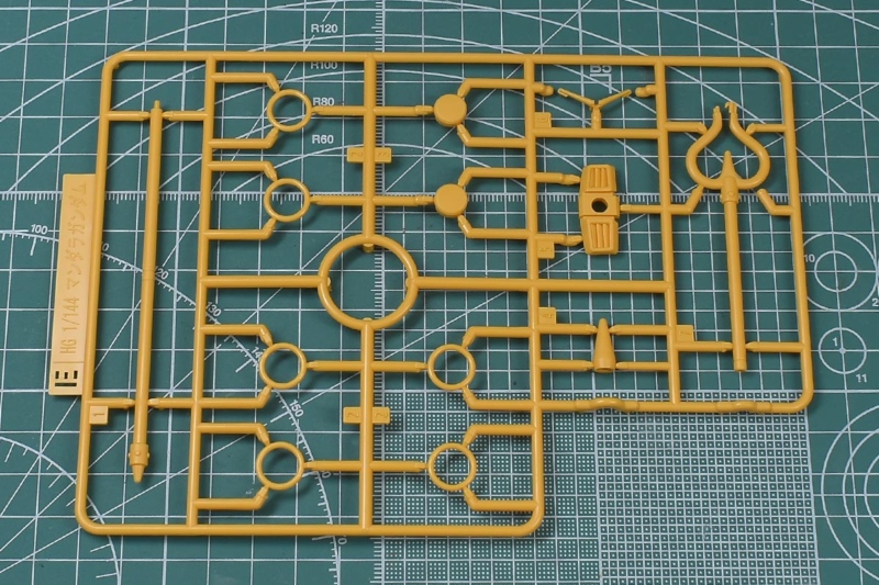 ↑Aランナー。グレー、ダークイエロー、ブルー、ホワイトのイロプラランナーで、頭部や胴体部、釣り鐘パーツ、ハンドパーツなど。KPS素材です。