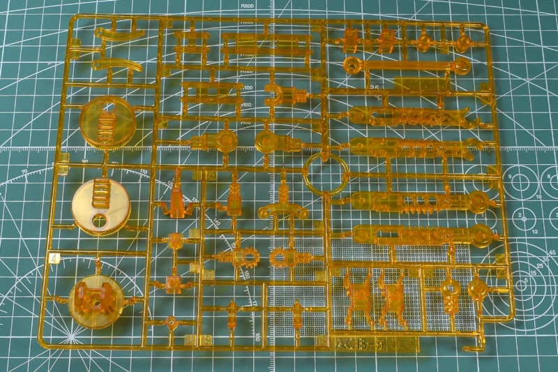 ↑ACB-5ランナー。クリアオレンジ成形色で、アクションベースの支柱やジョイントパーツです。